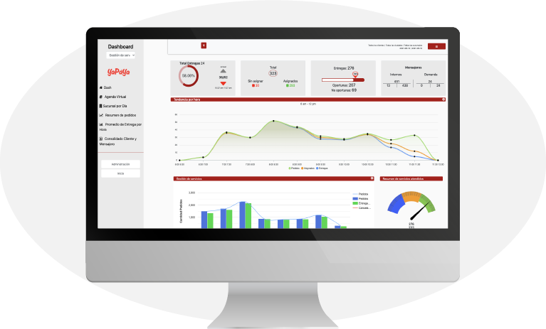 Control y seguimiento absoluto a los diferentes procesos que incurren en nuestra logística, paneles de crecimiento y efectividad de los procedimientos e informacion en tiempo real de la efectividad de las entregas y calidad de las mismas.
